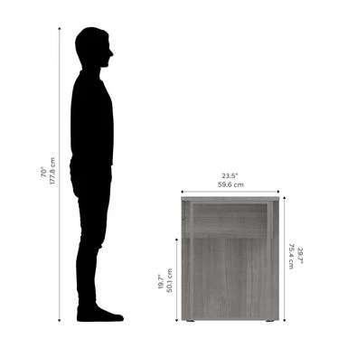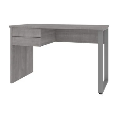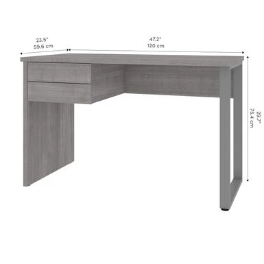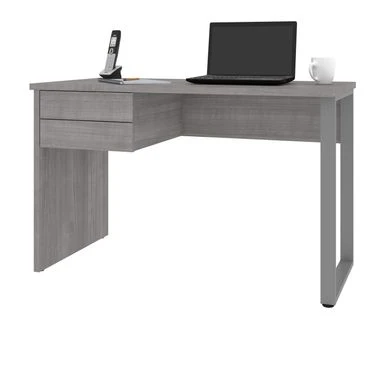 This Small Desk is the perfect solution when it comes to creating a small study area or home office. Â The Desk is made from durable materials and features a melamine finish that resists everyday damage. Â The U-shaped metal leg creates a modern look. Â Easily store accessories and small office supplies in the 2 box drawers, which glide on smooth ball-bearing slides for easy and quiet use. Â This desk is fully reversible and can be set up to form a left- or right-handed layout. Â Tested to meet ANSI/BIFMA quality standards for safety and performance.