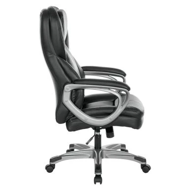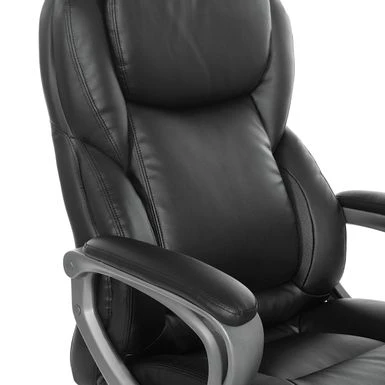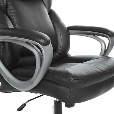 This Executive Bonded Leather Office Chair, complemented with a thick padded contoured seat and back with built-in lumbar support, is the perfect marriage of style and function. A heavy duty coated base with black end caps and dual wheel carpet casters add ease of mobility to this product. Chair comes complete with padded loop arms, locking tilt control with adjustable tilt tension and one touch pneumatic seat height adjustment. This chair is an instant ergonomic and aesthetic update to any office!