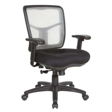 Enjoy comfort while you work at your desk with the ProLine II mesh office chair from Office Star Products. A padded seat and mesh back provide comfortable seating and the pneumatic base lets you easily adjust chair height and back angle. Enjoy comfort while you work at your desk with the ProLine II mesh office chair from Office Star Products. A padded seat and mesh back provide comfortable seating and the pneumatic base lets you easily adjust chair height and back angle. Dual-wheel carpet casters let you freely move on any surface. Breathable Air Mist mesh back with FreeFlex II fabric seat 2-to-1 synchro tilt control with adjustable tilt tension One-touch pneumatic seat height adjustment Height adjustable arms Ratchet back height adjustment Heavy duty nylon base with dual wheel carpet casters Assembled Dimensions: 26.81 inches wide x 24.13 inches deep x 42.44 inches high Assembled Height Range: 36.31 – 42.44 inches high Seat Dimensions: 20.25 inches wide x 19 inches deep x 3.38 inches thick Seat Height Range: 19.06 – 22.63 inches Back Dimensions: 19 inches wide x 18.38 inches thick Weight Capacity: 250 pounds