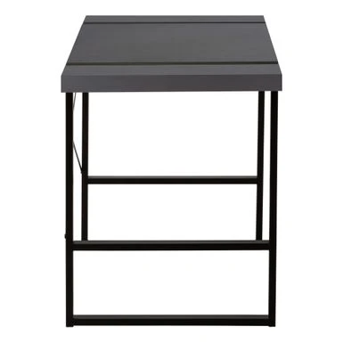 - Robust metal legs in a black finish are incorporated into the desktop for an interesting visual effect