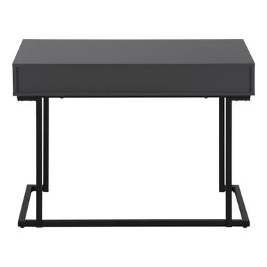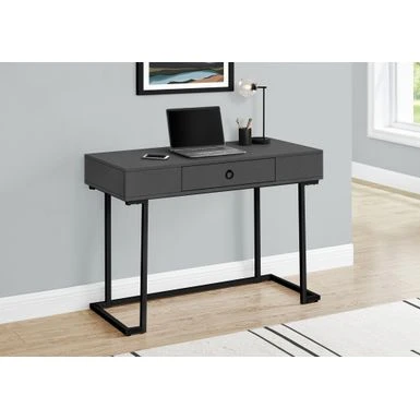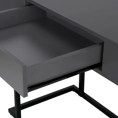 Searching for a writing desk to get excited about. Straight lines and modern black metal legs give this desk a stylish design perfect for any fashionista. This grey computer desk also provides ample storage with a single large, centered drawer adorned with a chic black ring pull. Sized perfectly for any home office space, this desk would also work as an accent piece or console table, adding glamour to any room in your home.