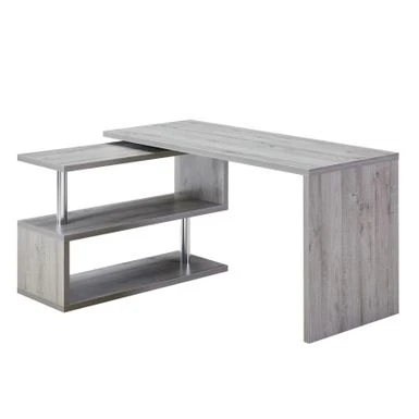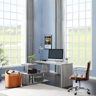 Create a modern and functional workspace with our Contemporary Convertible L-shaped Corner Computer Office Desk. This desk features a sleek, grey wood-look finish and can be assembled in either a rectangular or L-shaped configuration on either the left or right side. The high-quality turntable makes it easy to smoothly adjust the desk to fit your needs, providing ample space for your laptop, notebooks, and work essentials. With its stylish design and stability, this desk is the perfect addition to any contemporary home office.