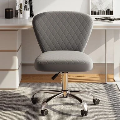 This eye-catching office chair is the perfect way to coming style and function. Upholstered in ultra-soft velvet fabric, this chair comes in your choice of color and features thick foam padding and an ergonomic armless seat. The 360-degree swivel and adjustable height ensures this chair will work with virtually any desk.