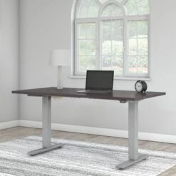 Somerset 60W Electric Height Adjustable Desk By Bush Furniture – Mocha Cherry/Cool Gray Metallic