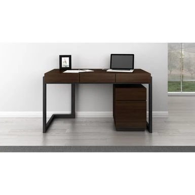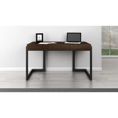 Appreciate the beauty and functionality of this three-drawer writing desk. Striking details such as curved supports, a cherry wood base, and walnut veneers give this contemporary desk a sophisticated air that elevates your decor.