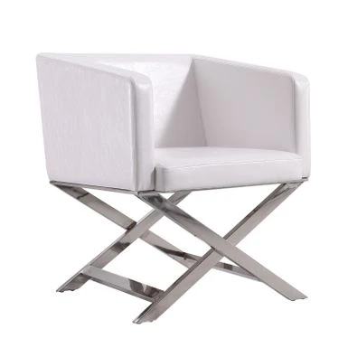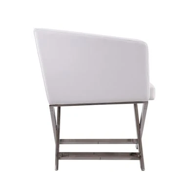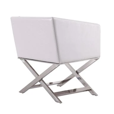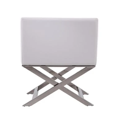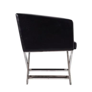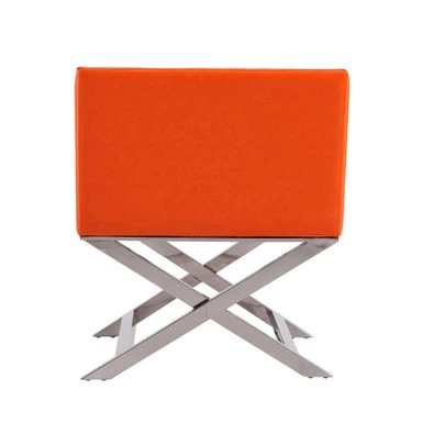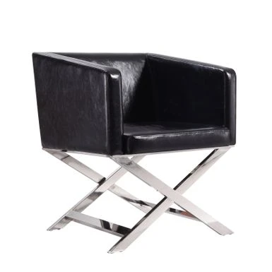 Take 5 in style. The iconic director’s chair silhouette is reimagined in this confident contemporary accent chair. Take 5 in style.The iconic director’s chair silhouette is reimagined in this confident contemporary accent chair. Classic folding legs are replaced with welded chrome-finished metal, while the casual low-back seat takes on tight tailoring and structured lines, transforming it into something decidedly sophisticated. Deep cushioning promises comfort with the inviting, slightly textured supple leatherette. Its generous seat and angled armrests give you plenty of room to lounge with a martini and great conversation. Features:-Expertly constructed of lightweight, solid aluminum with contemporary polished chrome finish-Hand-Welded X-shaped legs stay in place for sturdy support-Tailored upholstery in soft leatherette-Available in 3 colors: Black, White, and Orange
