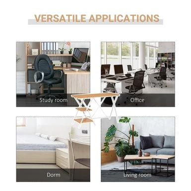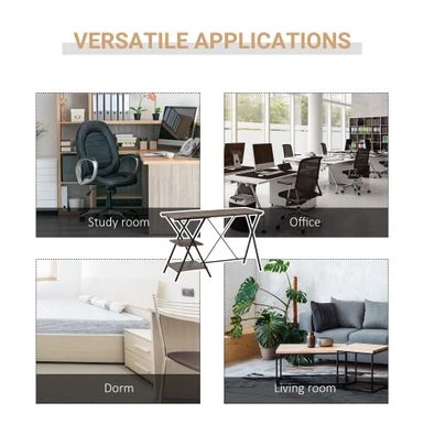 Bring life back into your workspace with this desk from HOMCOM. A minimalistic design, it fuses a slimline structure with wood-grain effect shelves so you can dress it up or leave it standing bare as you wish. The metal frame means it stands tall and steady, with a crossbar on the back for extra strength. It’s finished with two shelves on the side, giving you plenty of room for books, folders, stationery, etc. An easy way to get your space and work area organized efficiently.
