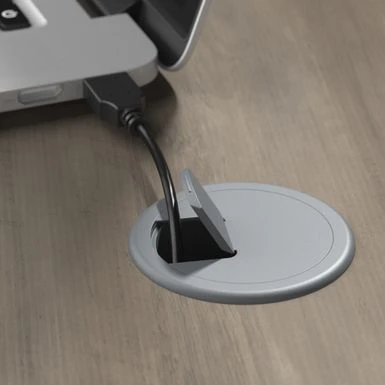 - Desktop includes a built-in wire management grommet to keep cords and cables out of the way