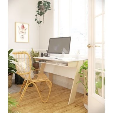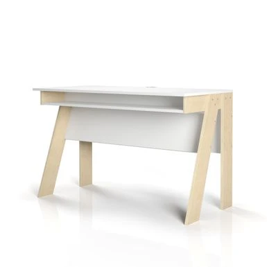 The Nexera Tangent Desk is an ideal work companion, featuring Scandinavian-inspired geometric lines that blend perfectly with Russian Plywood legs. Its light tones and unique rectangular worktop color create a contemporary and Nordic style. The desk is equipped with a wire grommet for cable management, and its top quality melamine finish is scratch, stain, and water-resistant.