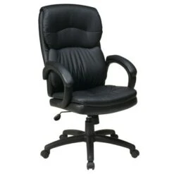 Work Smart Black Eco Leather High-Back Contour Executive Chair With Lumbar Support – Black Eco Leather Executive Chair, Nylon Base