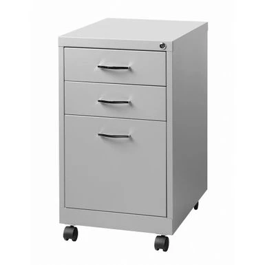 Organize your important documents and office supplies with this Porch & Den Penelope Platinum 19-inch 3-drawer pedestal file. The bottom drawer accommodates both letter- and legal-sized files, while the two upper drawers provide ample space for your office supplies. With a single lock securing all three drawers and caster wheels, this file cabinet is both secure and easily movable. The smooth ball-bearing suspension ensures quiet and effortless drawer operation. Plus, it is Greenguard Gold certified for low chemical emissions, making it an eco-friendly choice.