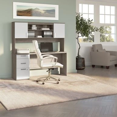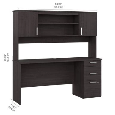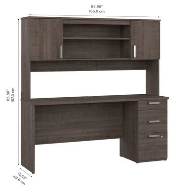 - Bundle includes: 65W Computer Desk with Storage, 65W Hutch with Doors