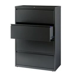 8000 Series 42″ Wide 4-Drawer Lateral File Cabinet, Black – Locking – Black – Metal/Steel