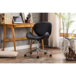 Porthos Home Orli Office Chair, PU Or Fabric Upholstery, Contoured Back/Seat – Black – PU