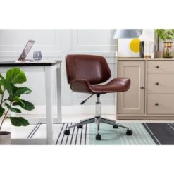Porthos Home Rudi Office Chair, PU Or Fabric Or Velvet Upholstery, Chrome Legs – Brown PU