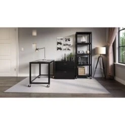 Space Solutions 18″Deep 3 Drawer Mobile Organizer Metal Cabinet, Black – Black – Letter