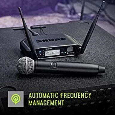 - Available in rack-mount, tabletop and guitar pedal receiver options with a wide selection of lavalier, headset and handheld microphone choices – including the legendary SM58. Compatible with GLX-D+FM Dual Band Frequency Manager.