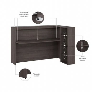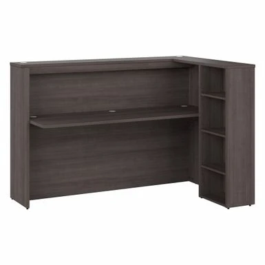 The Bush Business Furniture Studio C 72W Privacy Desk with Shelves offers an ideal solution for remote work professionals seeking to eliminate distractions in their home office. The Bush Business Furniture Studio C 72W Privacy Desk with Shelves offers an ideal solution for remote work professionals seeking to eliminate distractions in their home office. Tackle your next project or assignment from the comfort of a personal sanctuary with tall panels that make it easy to stay focused on the task at hand. The 72-inch desk’s durable thermally fused laminate work surface supports a computer, books, paperwork and more with a weight capacity of 200 pounds. Powering electronic equipment is simple thanks to three wire management grommets on the desktop, two on the upper shelf and an additional grommet near the base of the side panel. The 4 shelf bookcase is perfect for keeping reference materials organized and accessible or for giving your workspace a personal touch with plants, pictures and decorations. Each shelf supports up to 50 pounds, so storing larger items is no problem. The bookshelf desk is finished on all sides to look great facing any direction and comes with wall attachment hardware for maximum stability. This home office desk with storage has been meticulously tested to meet or exceed ANSI/BIFMA quality standards for safety, durability and performance and is backed by the Bush Business Furniture 10 Year Manufacturer’s Warranty. Upgrade your workspace as needed with a wide array of Studio C products, including Office Chairs, File Cabinets, Bookcases and more (coordinating items sold separately).