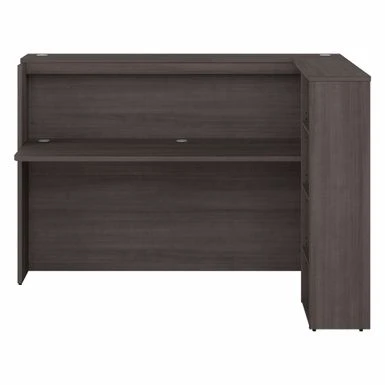 - Commercial-grade desk with storage is finished on all sides so you can find the perfect configuration to eliminate distractions